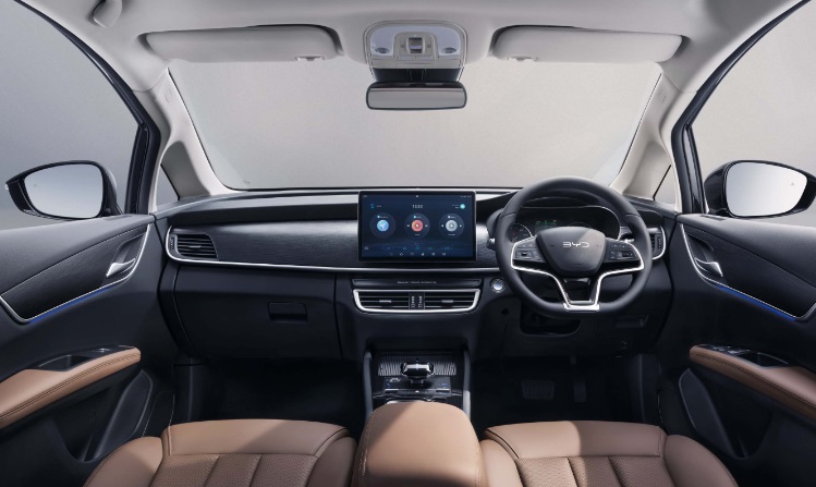 BYD M6 được trang bị các tiện ích như: vô lăng 3 chấu tích hợp phím chức năng, ghế bọc da/chỉnh điện, màn hình cảm ứng trung tâm 12,8 inch hỗ trợ Apple CarPlay/Android Auto, hệ thống điều hòa tự động với khả năng lọc không khí PM2.5; cần số điện tử, đèn viền trang trí nội thất, cửa sổ trời toàn cảnh với rèm che nắng cản tia UV và cửa cốp chỉnh điện.